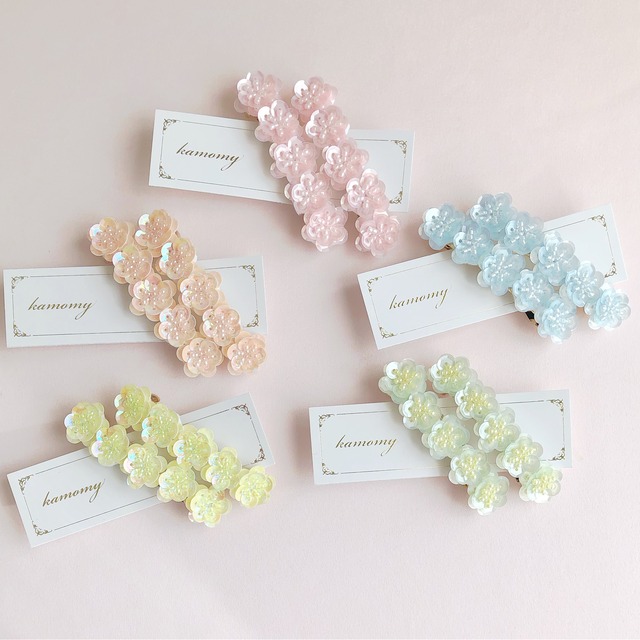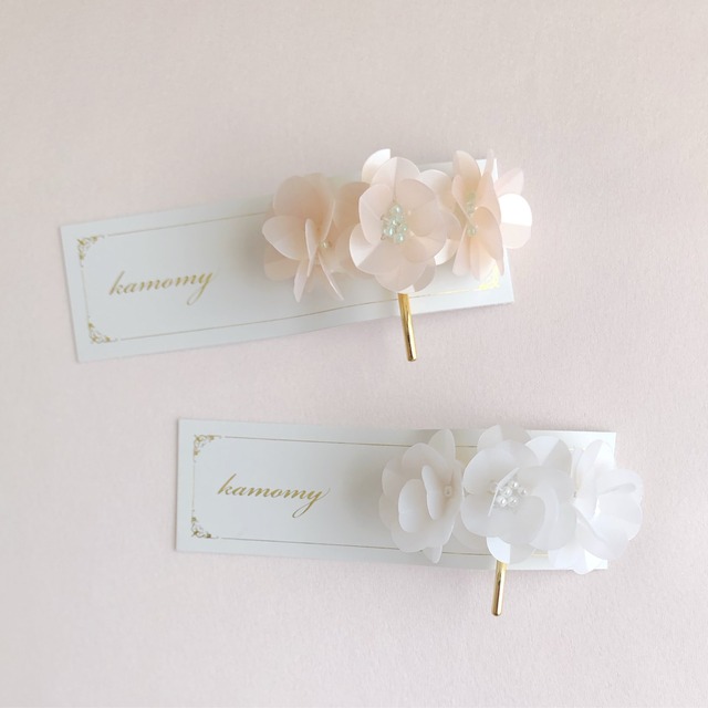 お花のミニバレッタ♡ ✔️サイズ約7cm ✔️2つセット ✔️左右とも使用可能◎ ショートヘアやボブヘアの方も使いやすい! ひとつで →ハーフアップの結び目に♡ →サイドで前髪を留めて♡ ふたつで →サイドに重ねて♡ →ハーフツインで両側に♡ ひとつでも、ふたつでも使えてお得! いろいろなカラーと組み合わせてもっと楽しく♡ 簡単に可愛いヘアアレンジが出来ちゃいます◎ お花はひとつひとつ、 ビーズやスパンコールを手縫いして作っています。 発送までに約1週間ほど お時間をいただきます。