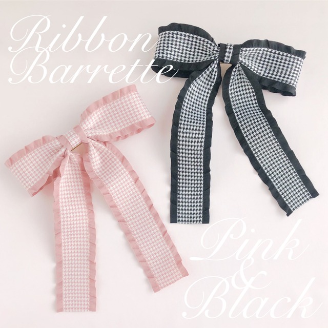 千鳥格子とフリルが可愛らしいデザインのバレッタ♡ 大きめサイズで、垂れるリボンも長いので ポニーテールなどのアップヘアにつけると 前からもリボンがぴょんっと見えるサイズ感が可愛い♡ バッグの持ち手につけても可愛いです♡ サイズ:約15cm×20cm 発送までに約1週間〜2週間ほど お時間をいただきます。