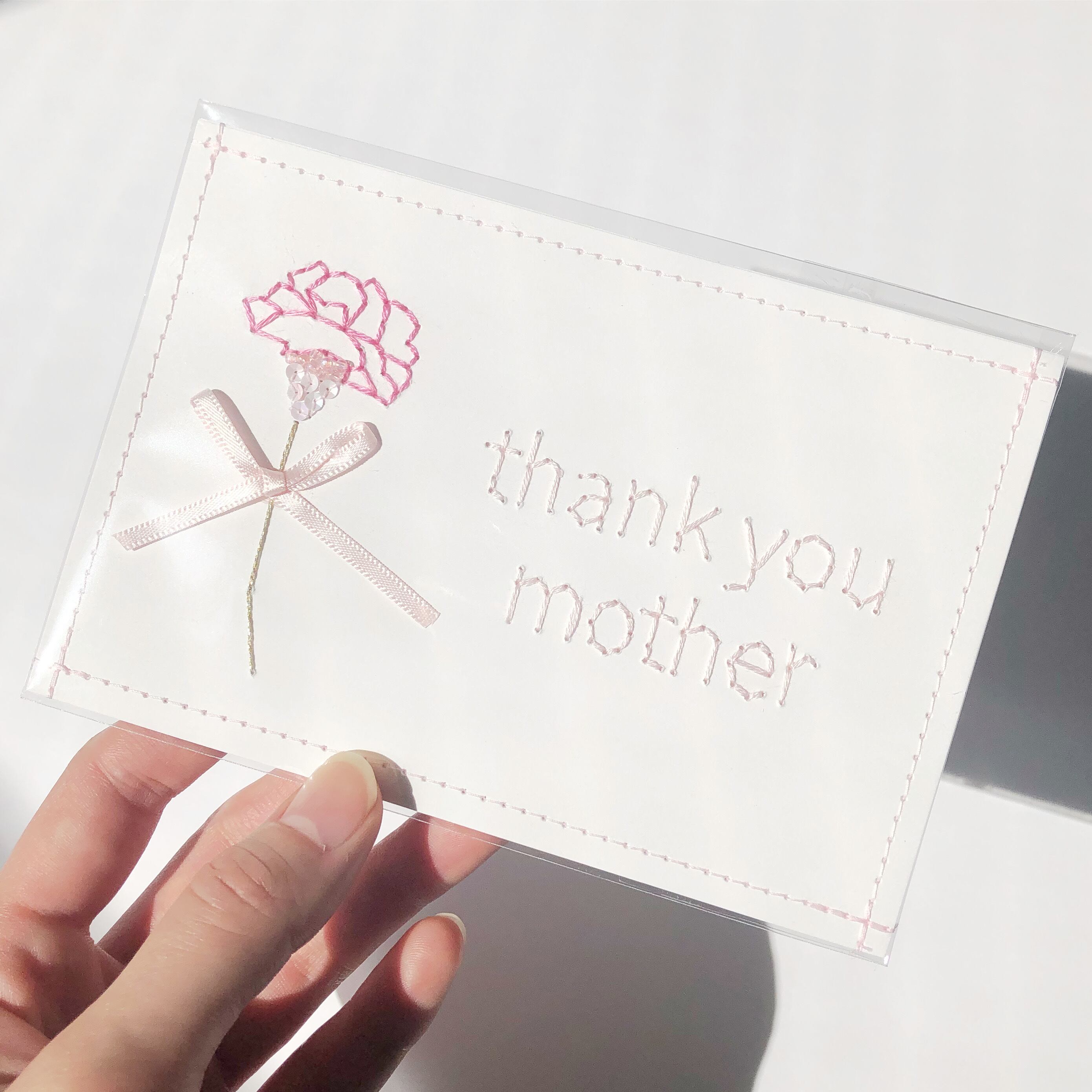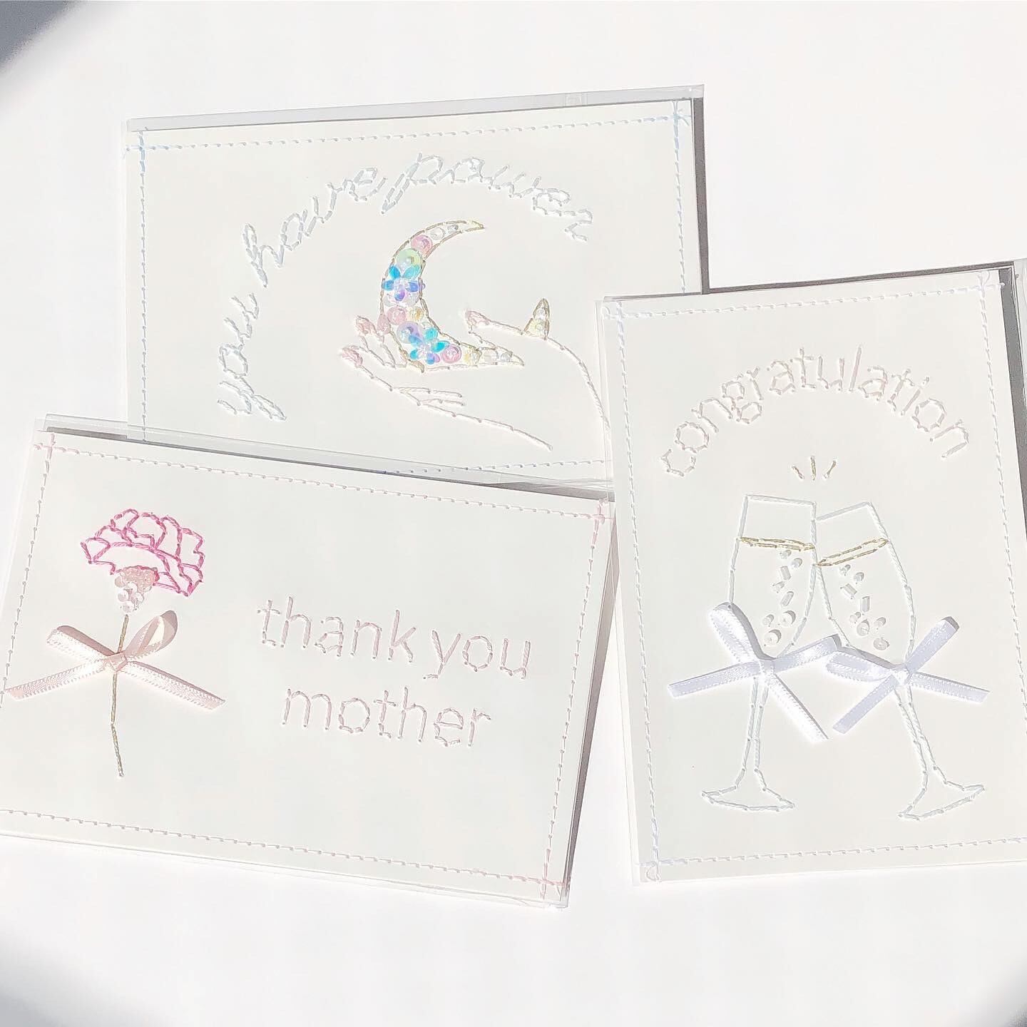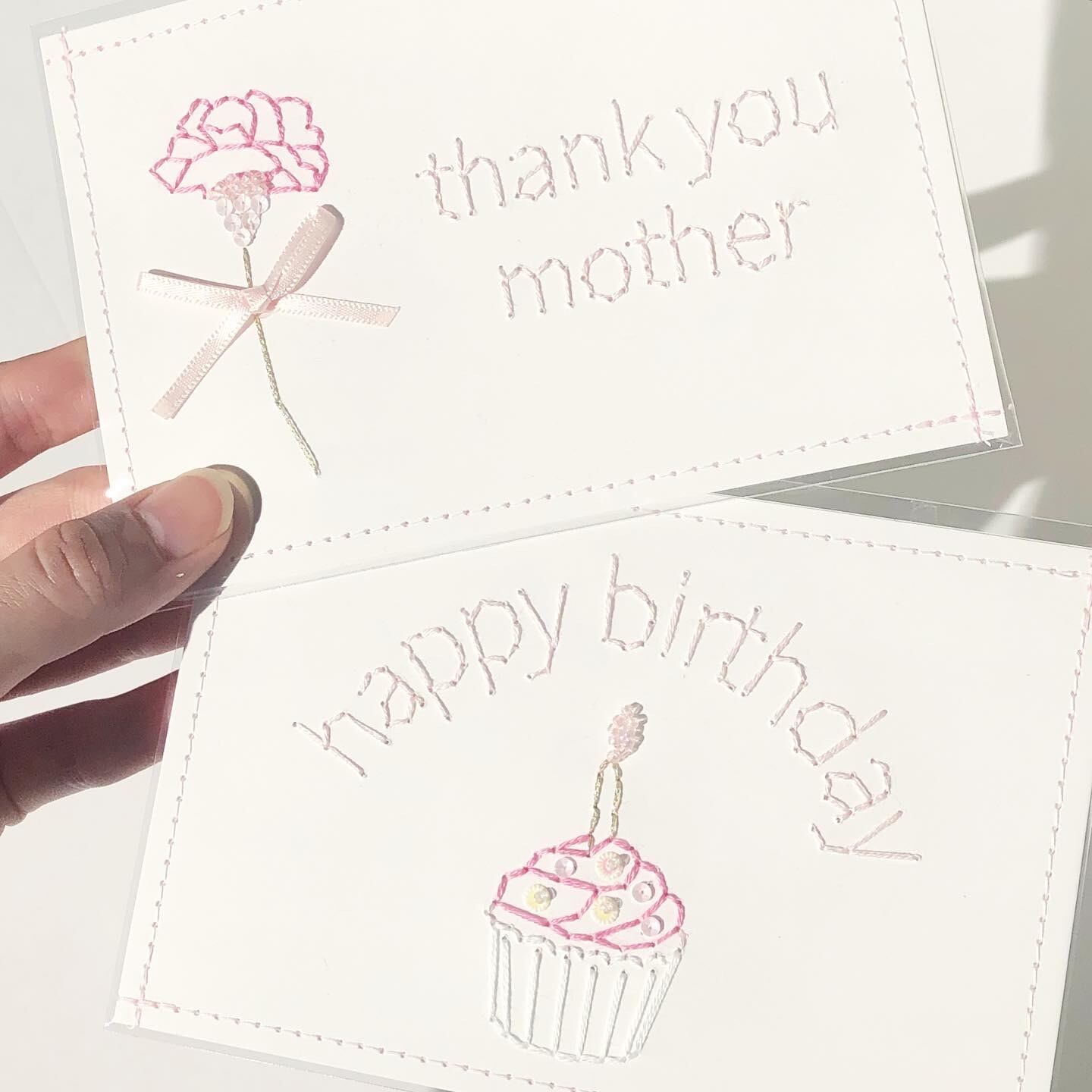 裏面の刺繍糸が見えないよう、同じ紙を2枚貼り合わせて周りにミシンでステッチをかけております。