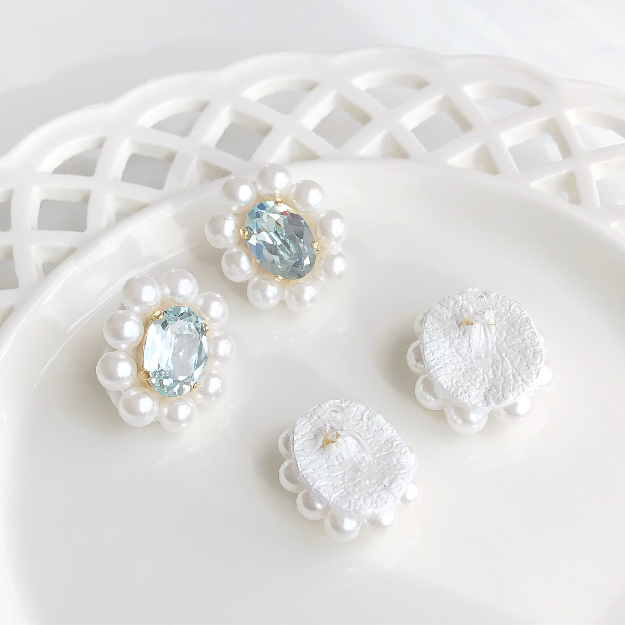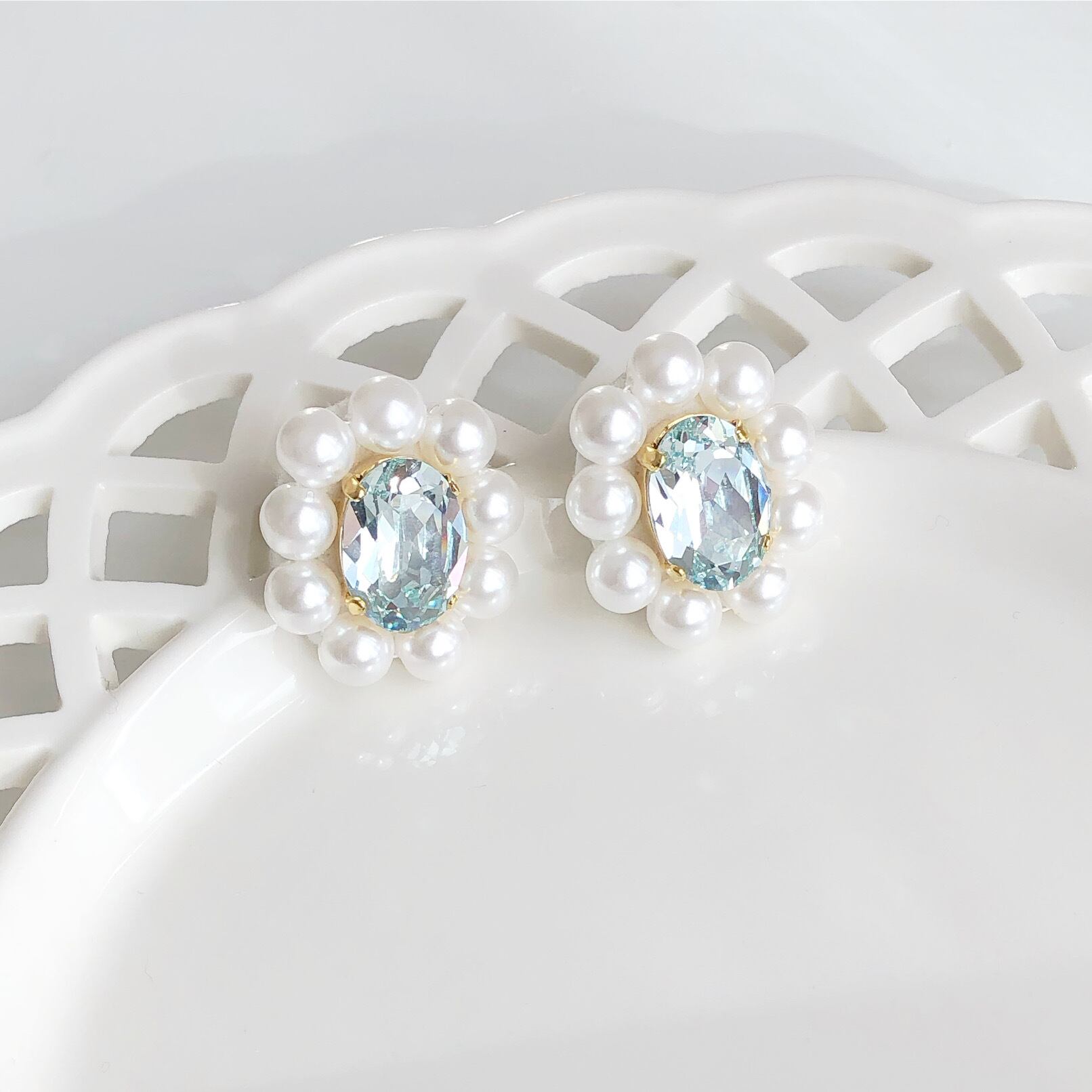 ライトブルーのビジューは、透明感があって