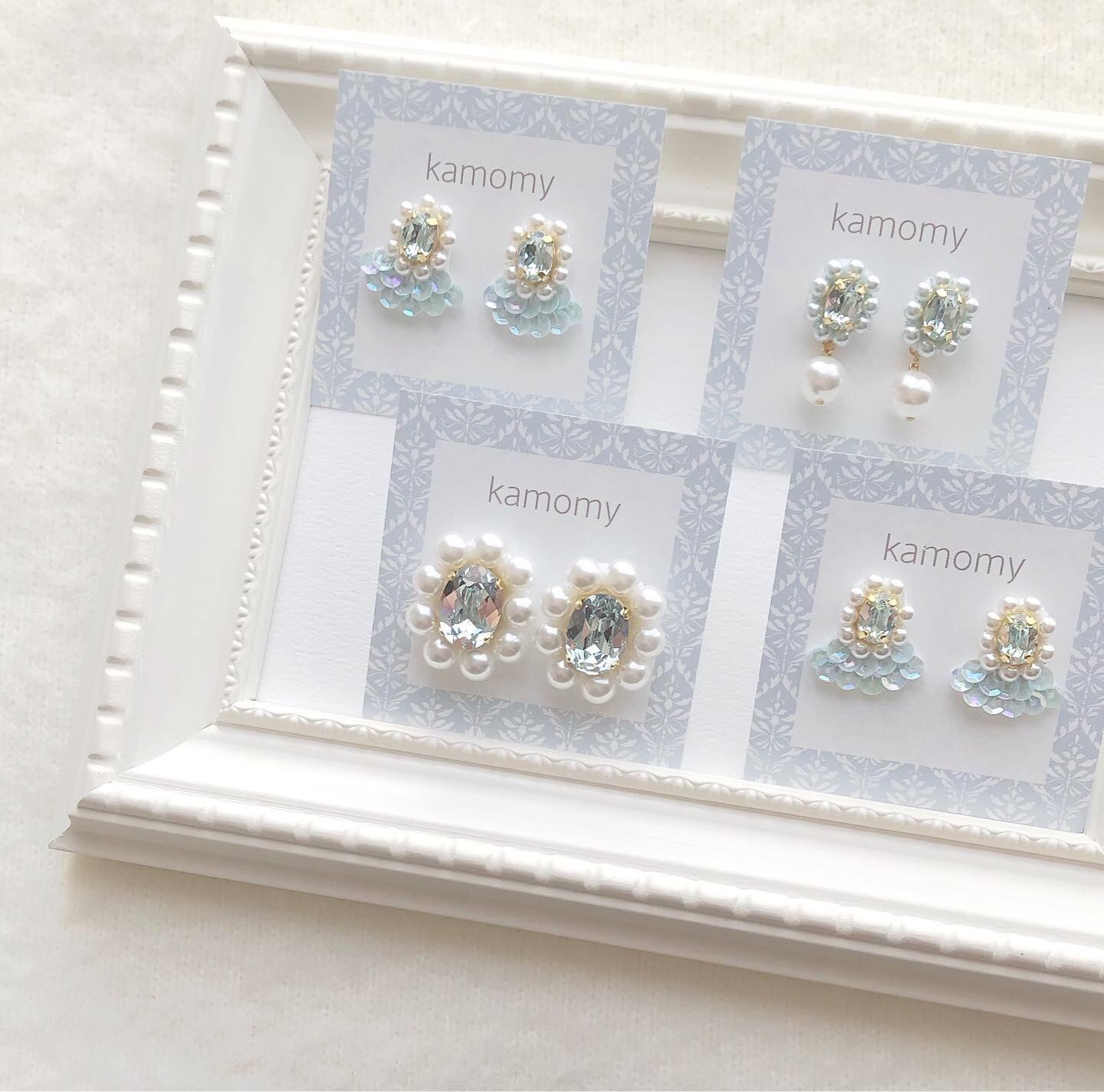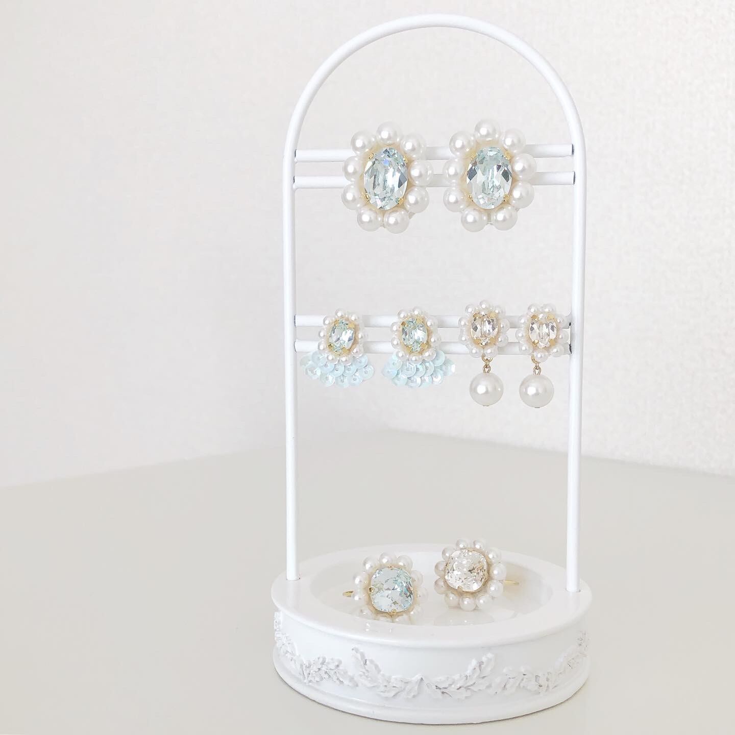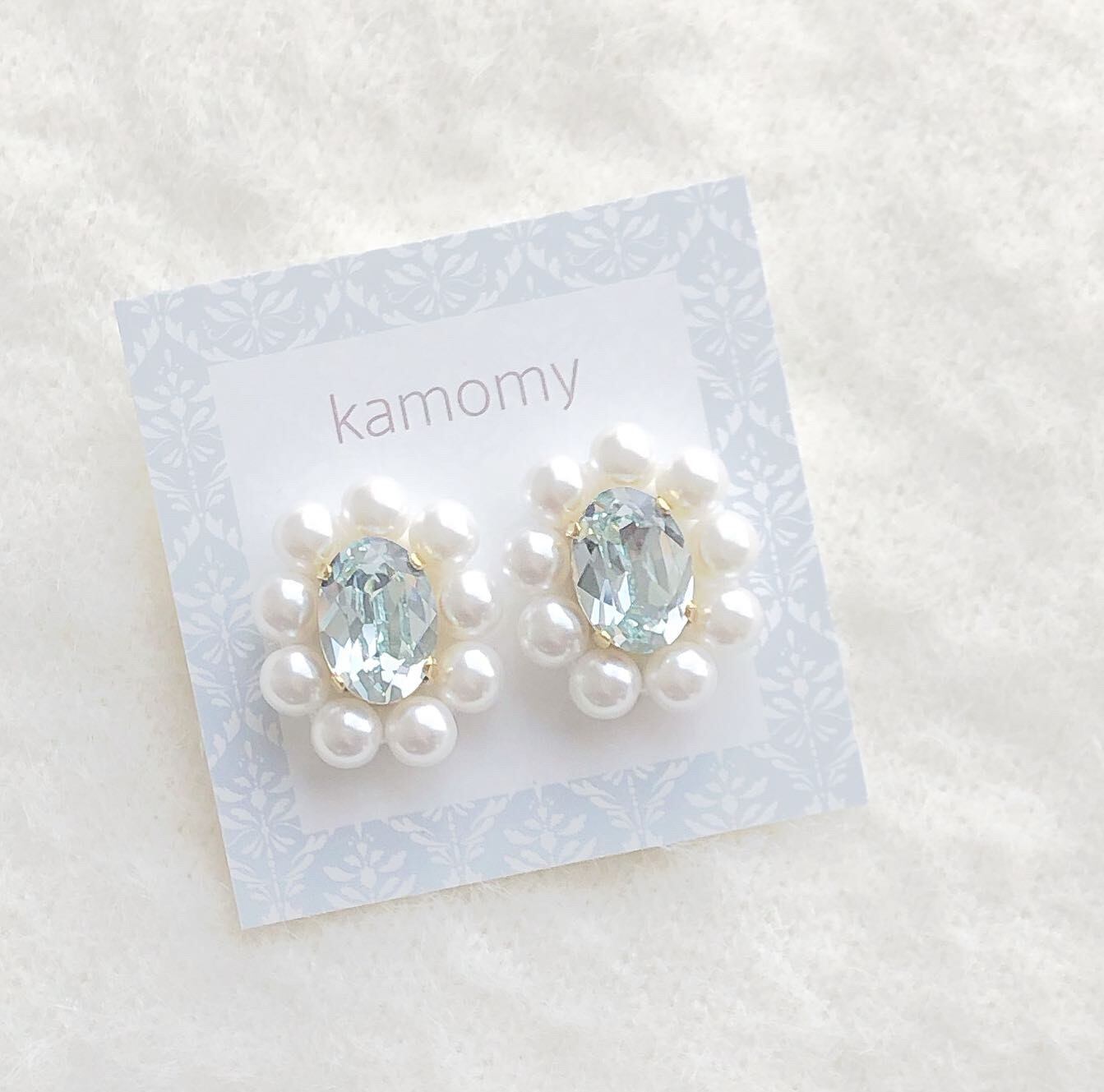 ライトブルーのビジューと