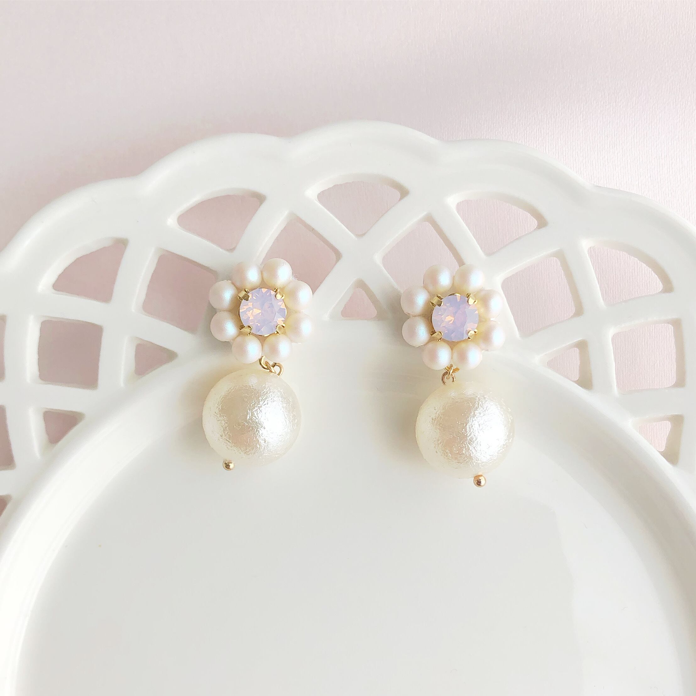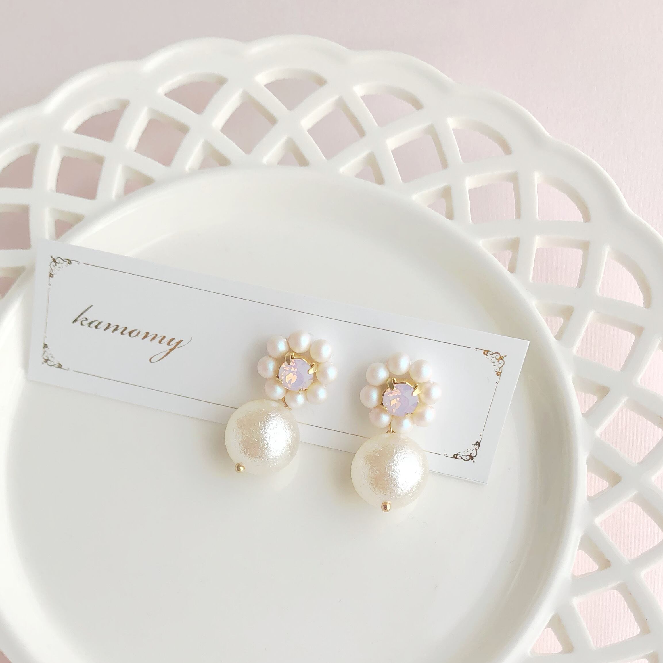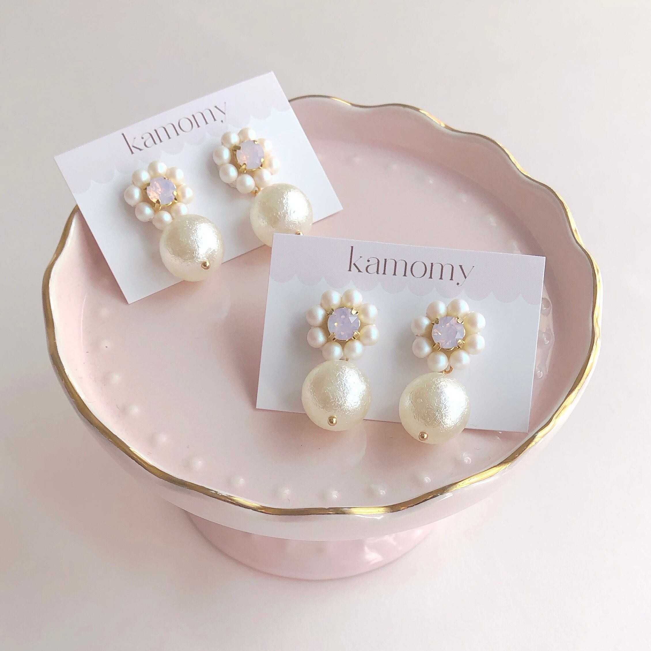 ビジューを囲むパールも、クリスタルガラスに加工を施した高品質なパール。