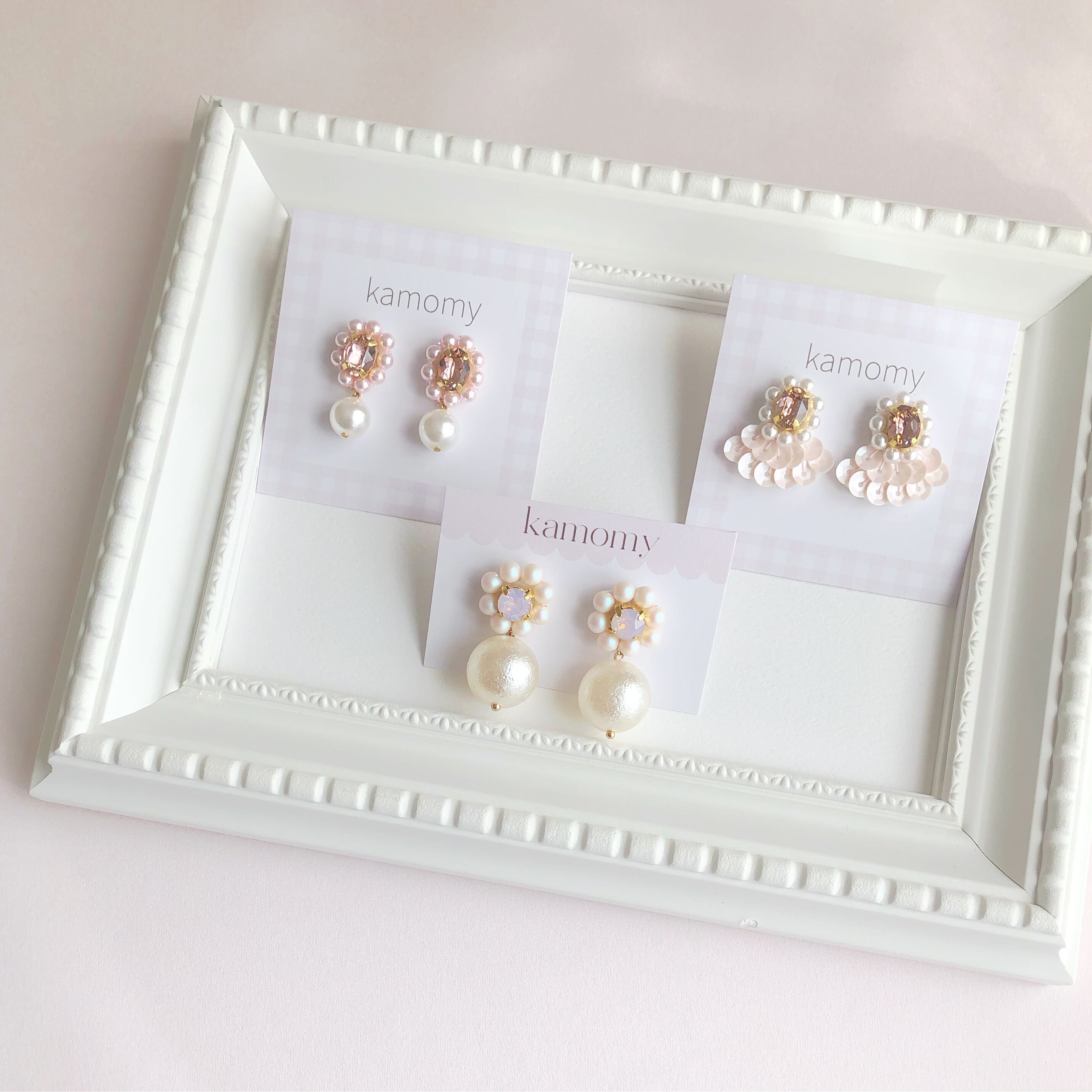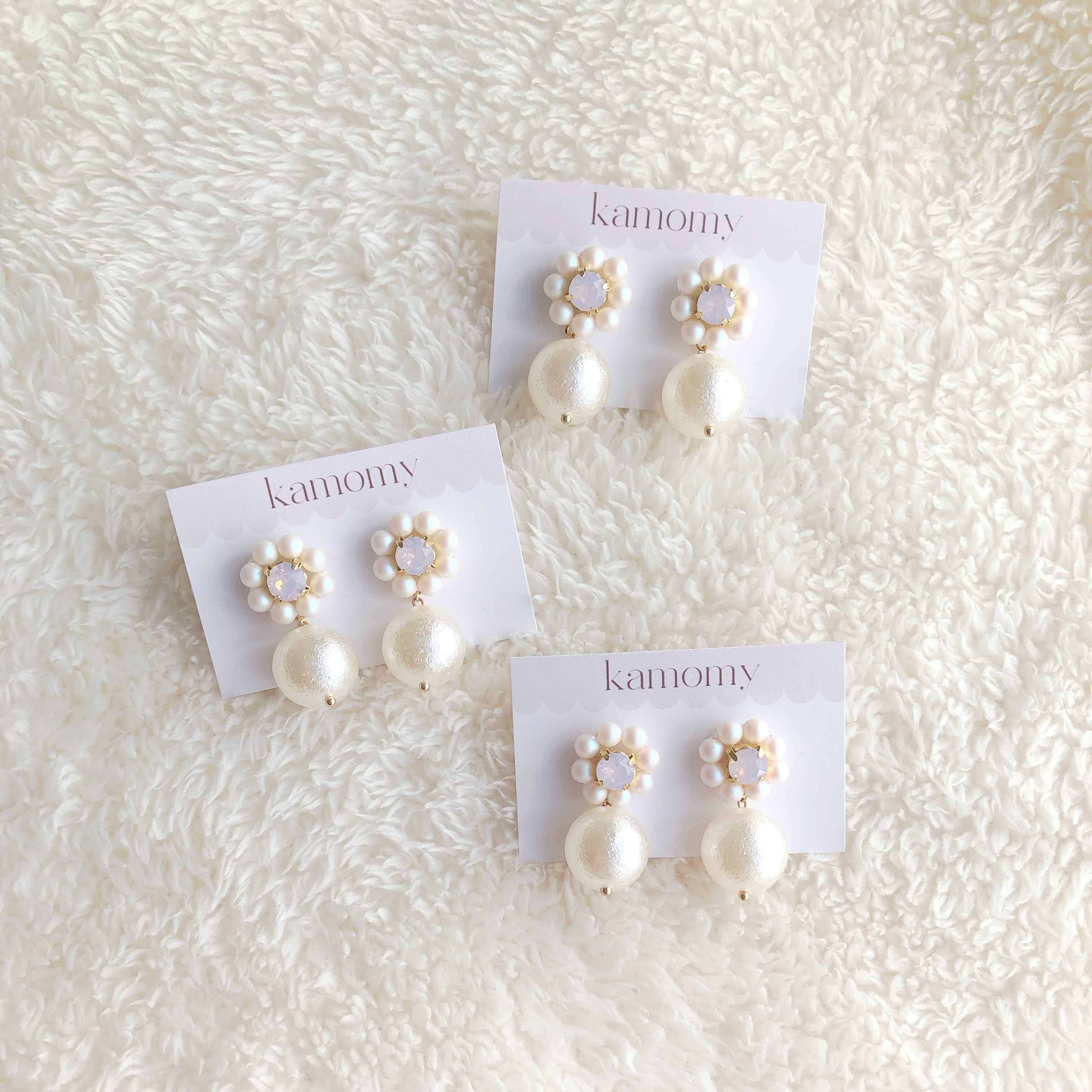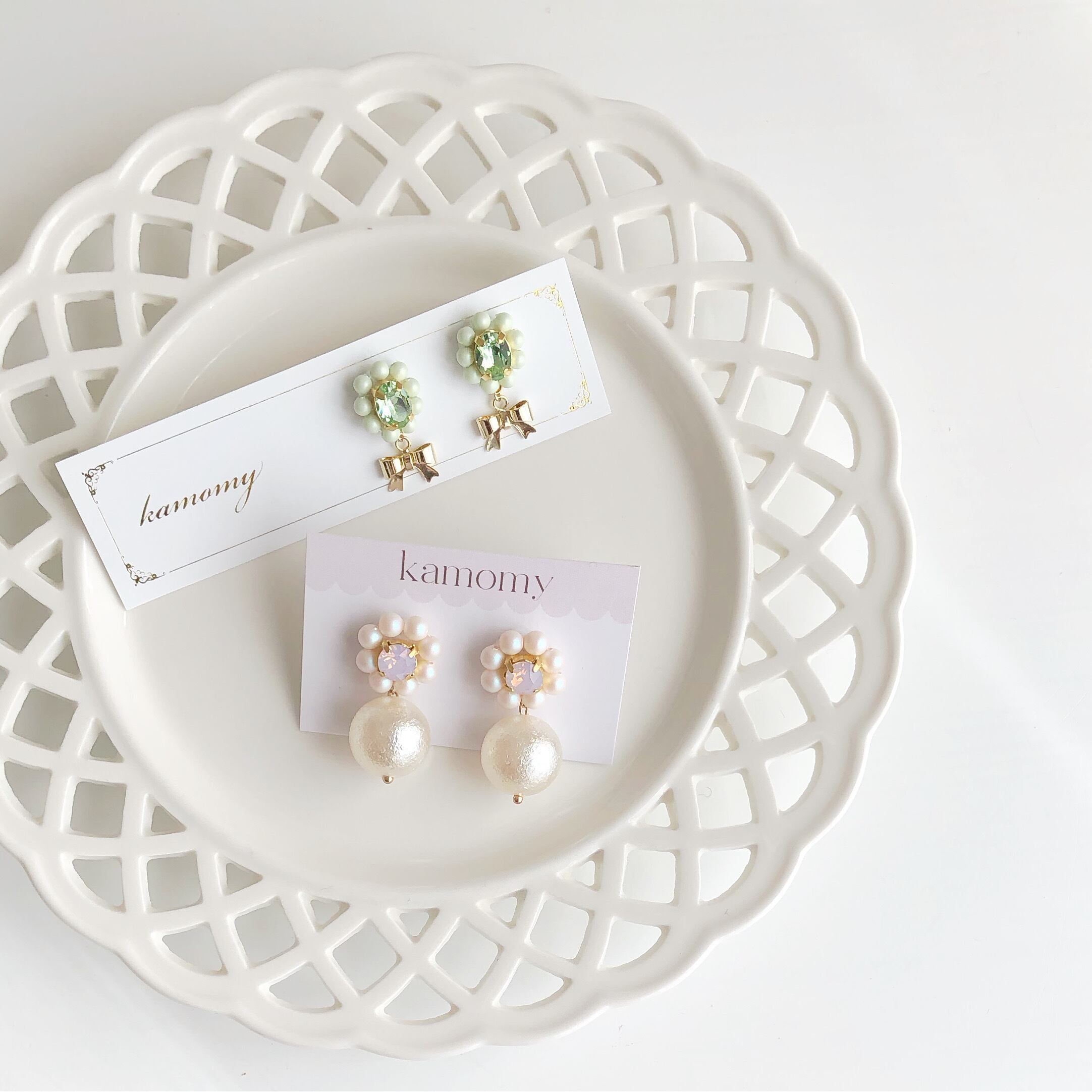 ビジューを囲むパールも、クリスタルガラスに加工を施した高品質なパール。