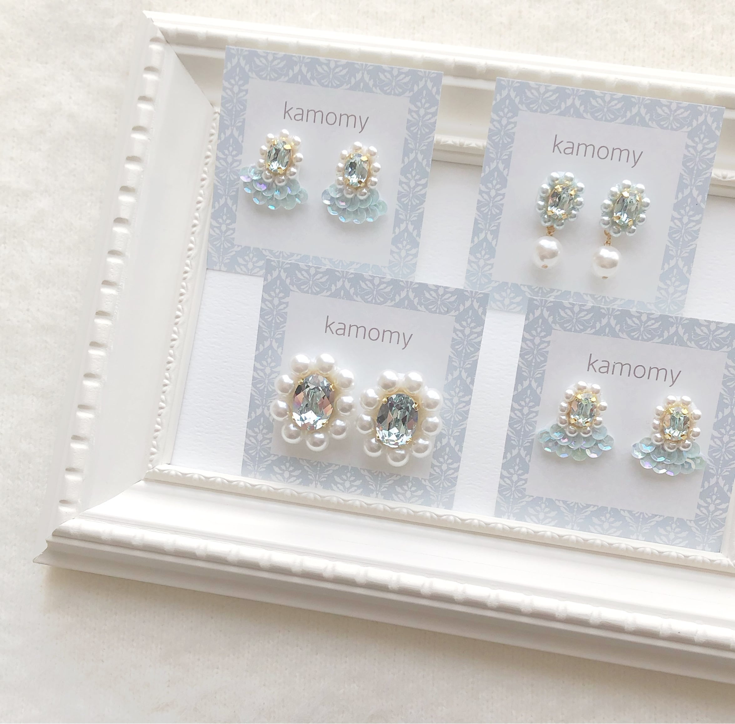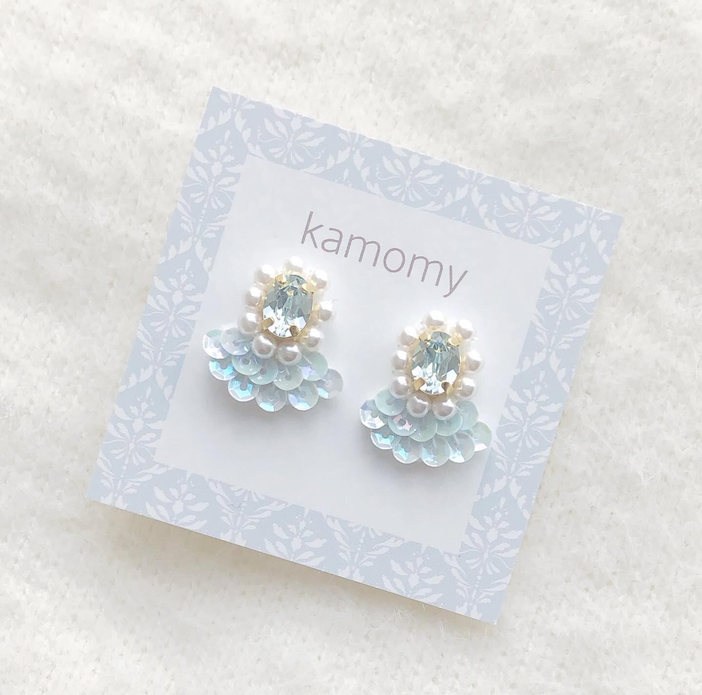 ブルーのスパンコールは、光の当たり方や見る角度によって