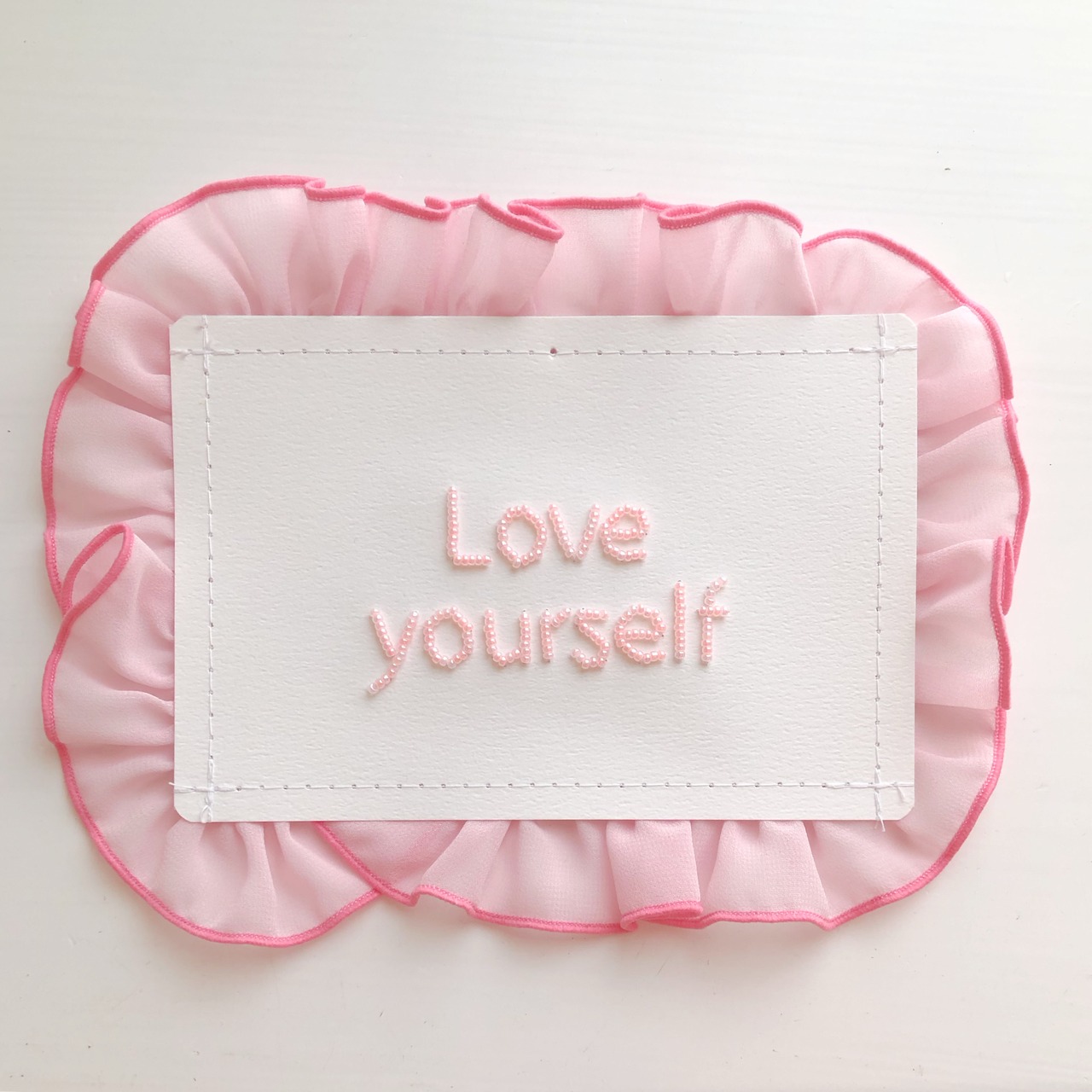 お好きな言葉をビーズ刺繍した